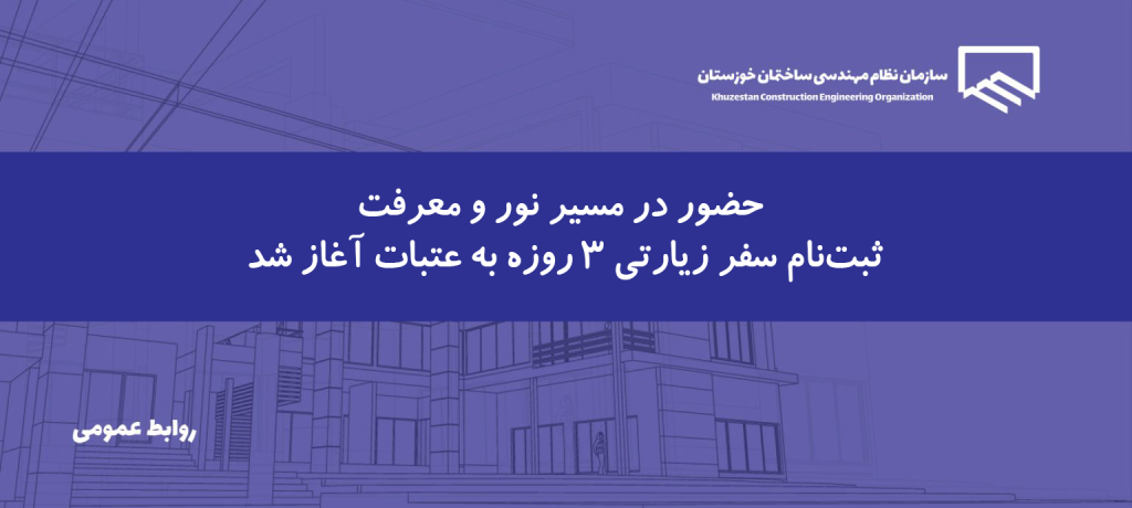 13 دی اخبار روز, اخبار سازمان, اخبار و اطلاعیه ها, مهمترین اخبار ارسال توسط alikhani 0 دیدگاه اعزام کاروان زیارتی سازمان نظام مهندسی خوزستان به عتبات عالیات به اطلاع اعضای محترم سازمان نظام مهندسی ساختمان استان خوزستان میرساند؛ این سازمان با هماهنگی کمیته ایثارگران و سازمان ح... ادامه مطلب