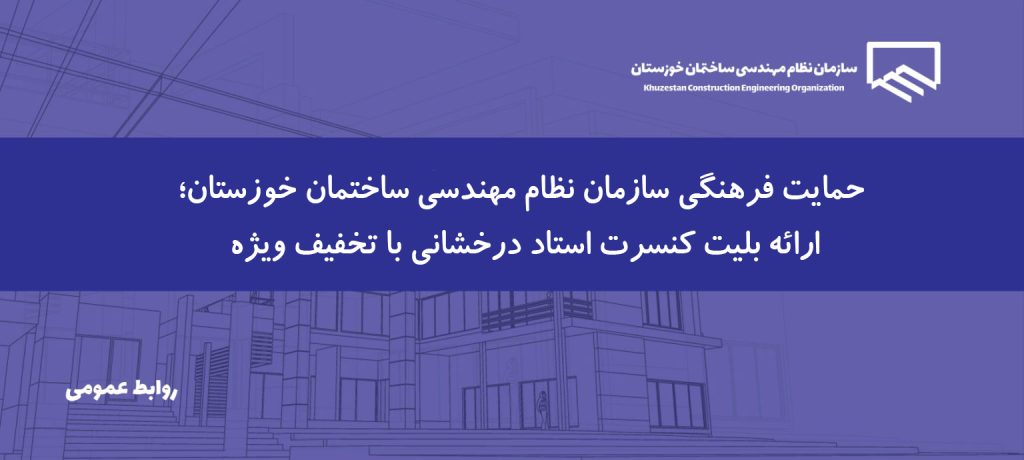 12 آذر آموزش و رفاه, اخبار روز, اخبار سازمان, اخبار سازمان, اطلاعیه رفاه, خدمات رفاهی, کمیته رفاه, مهمترین اخبار ارسال توسط روابط عمومی 0 دیدگاه حمایت فرهنگی سازمان نظام مهندسی ساختمان خوزستان؛ ارائه بلیت کنسرت استاد درخشانی با تخفیف ویژه به اطلاع اعضای گرامی سازمان میرساند، در چارچوب برنامههای رفاهی و با هدف حمایت از فعالیتهای فرهنگی، امکان تهیه بلیت کن... ادامه مطلب
