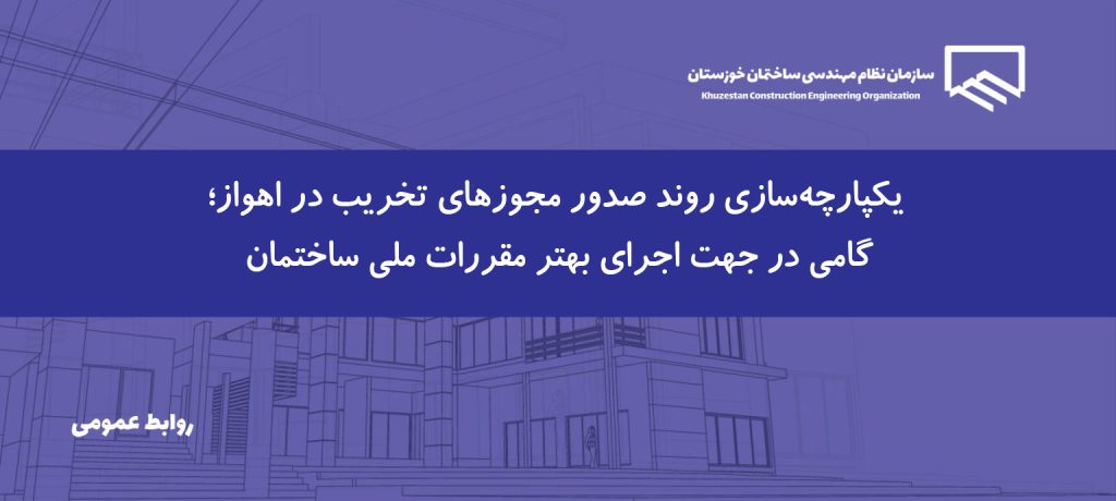 15 آذر اخبار روز, اخبار سازمان, اخبار سازمان, مدیریت سازمان, مهمترین اخبار ارسال توسط روابط عمومی 0 دیدگاه دستورالعمل نظارت بر مراحل صدور مجوزهای تخریب ابلاغ شد در پی تعاملات مشترک میان شهرداری اهواز و سازمان نظام مهندسی ساختمان استان و با هدف ارتقای ایمنی و پاسداری از حقوق شهروند... ادامه مطلب