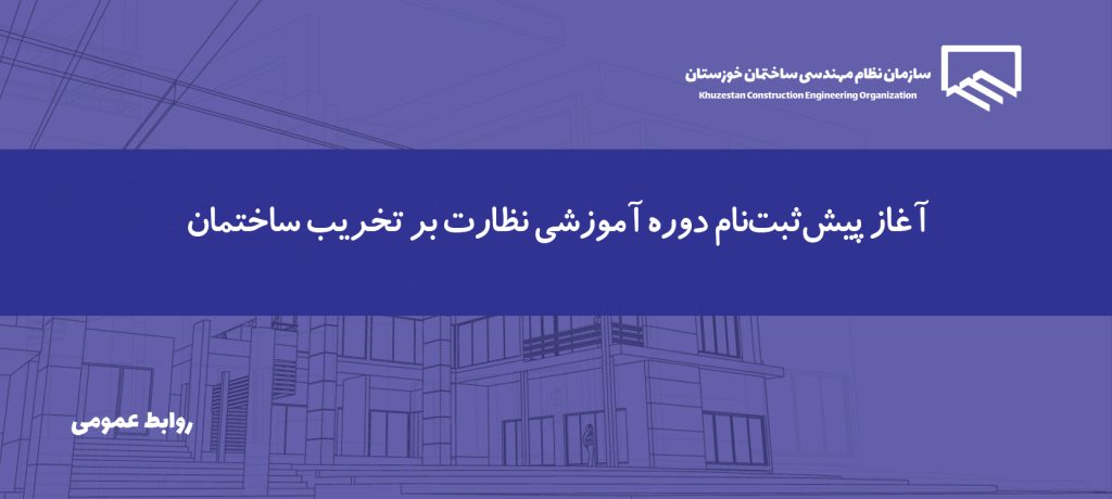 24 آذر آموزش و ترویج, آموزش و رفاه, اخبار آموزش, اخبار و اطلاعیه ها, اطلاعیه ها, مدیریت سازمان ارسال توسط روابط عمومی 0 دیدگاه برگزاری دوره آموزشی مهندسی نظارت بر تخریب ساختمانها بدینوسـیله به اطلاع کلیه مهندسان ناظر در رشته عمران میرسانـد، با توجه به مصوبه مورخ،1404/09/16 هیأت مدیره محترم سازمان ن... ادامه مطلب