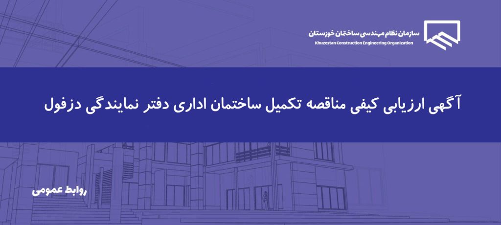 25 آذر اخبار روز, اخبار سازمان, اخبار و اطلاعیه ها, دفاتر نمایندگی, مناقصات, مهمترین اخبار ارسال توسط روابط عمومی 0 دیدگاه دعوتنامه شركت در فراخوان ارزیابی کیفی پیمانکاران جهت برگزاری مناقصه محدود ساختمان دفتر نمایندگی دزفول سازمان نظام مهندسی ساختمان استان خوزستان در نظر دارد براساس آیین نامه مالی معاملاتی خود جهت برگزاری مناقصه محدود، ارزیاب... ادامه مطلب