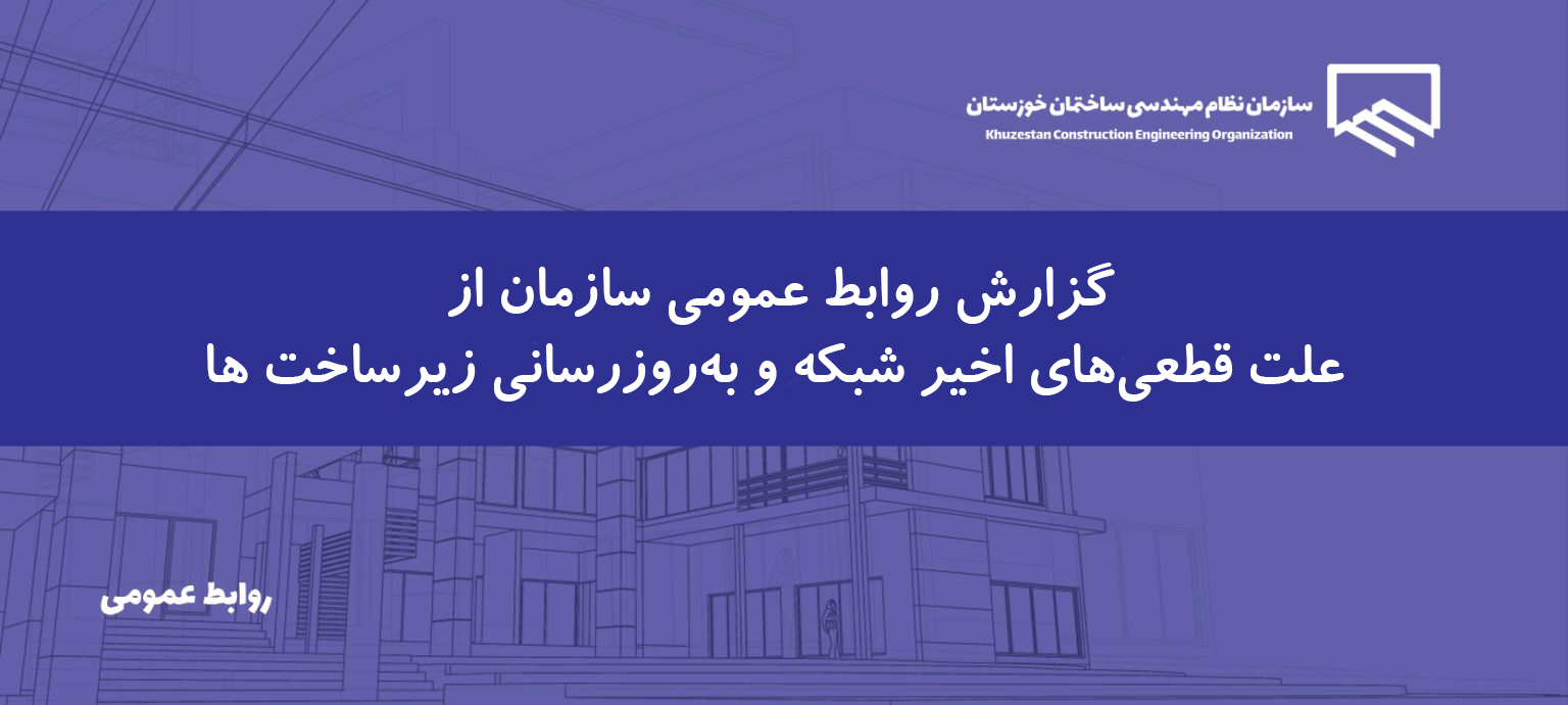 قطعیها و اختلالات اخیر در شبکه سازمان، به منظور اجرای فرآیند بهروزرسانی گسترده سختافزاری و نرمافزاری انجام شده است.