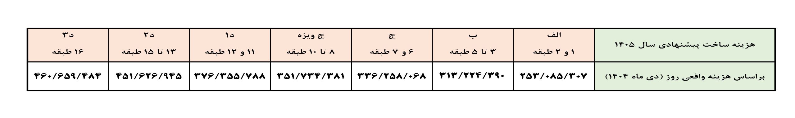 بر اساس این گزارش، پیشنهادهای ارائهشده در قالب جدول ذیل محاسبه و هزینه ساختوساز با لحاظ نرخ تورم سالیانه نسبت به سال ۱۴۰۴ (هزینه واقعی روز) برآورد شده است.