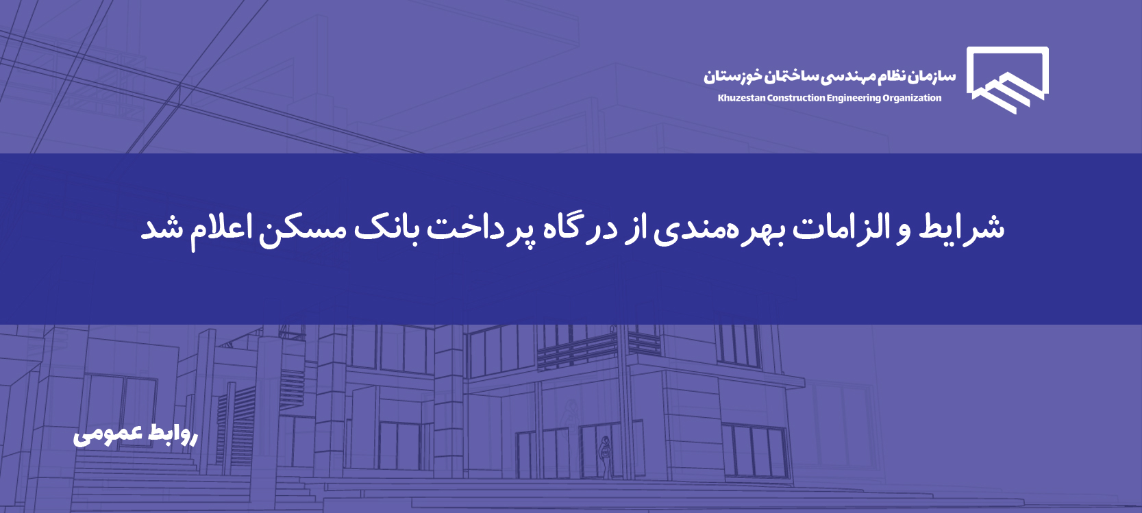 همچنین مهندسین محترم (اشخاص حقیقی و حقوقی) که تاکنون نسبت به افتتاح حساب در بانک مسکن اقدام ننمودهاند، ضروری است در بازه زمانی اعلامشده نسبت به افتتاح حساب در شعبه مرکزی بانک و انجام سایر الزامات مندرج در اطلاعیه قبلی اقدام نمایند تا امکان فعالسازی درگاه پرداخت برای ایشان فراهم گردد.