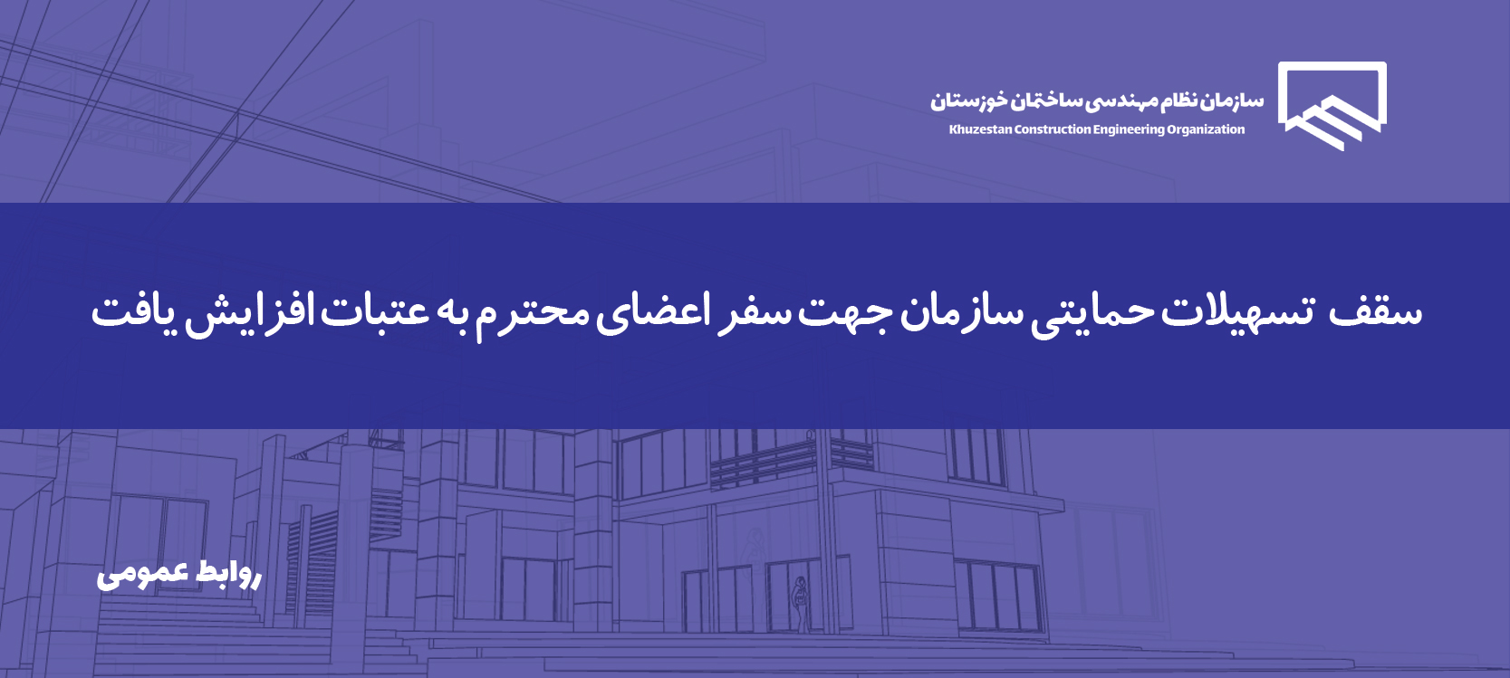 به اطلاع اعضای محترم سازمان میرساند؛ پیرو اطلاعیه قبلی در راستای اعلام حمایت از سفر معنوی زائران عتبات عالیات و تسهیل حضور هرچه بیشتر اعضا و همکاران گرامی در زیارت از نجف اشرف و کربلای معلی، سازمان تصمیم دارد سقف تسهیلات حمایتی خود از این سفر را افزایش دهد.