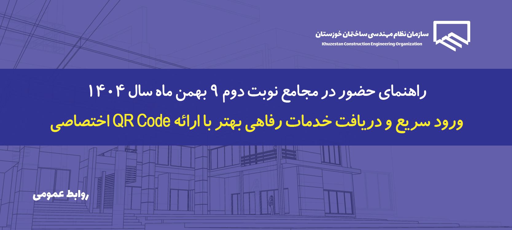 همچنین در راستای انتظامبخشی هرچه بیشتر به فرآیند برگزاری مجامع و با هدف تسهیل در احراز هویت، کنترل تردد و ارائه خدمات رفاهی مناسبتر، مقرر گردیده است ورود و خروج اعضا به تالار برگزاری مجامع از طریق اسکن QR Code اختصاصی هر مهندس انجام شود.