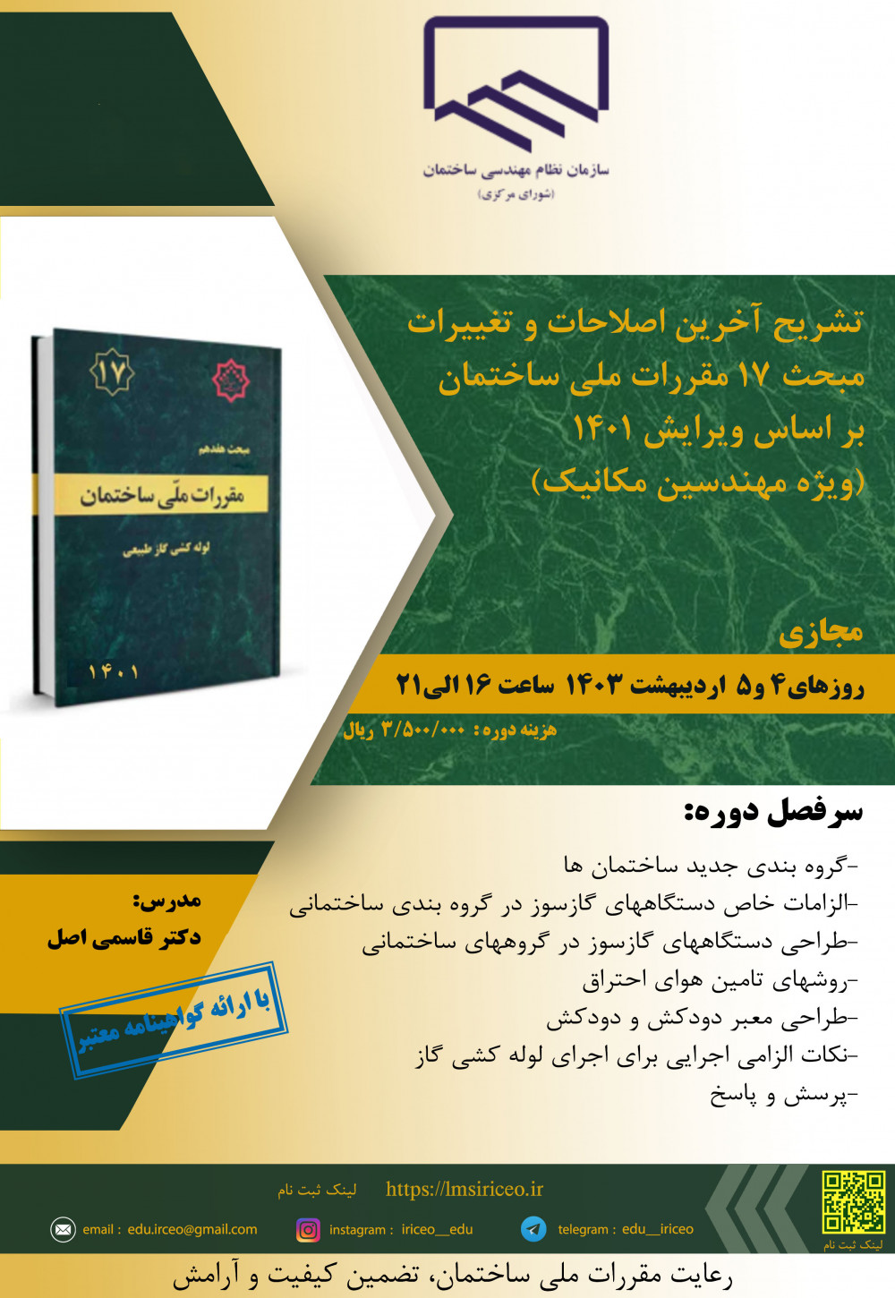به گزارش روابط عمومی سازمان نظام مهندسی استان خوزستان، مدیریت آموزش سازمان نظام مهندسی ساختمان کشور دوره آموزشی با عنوان”تشریح آخرین اصلاحات و تغییرات مبحث 17 مقررات ملی ساختمان بر اساس ویرایش 1401 (ویژه مهندسین مکانیک)”