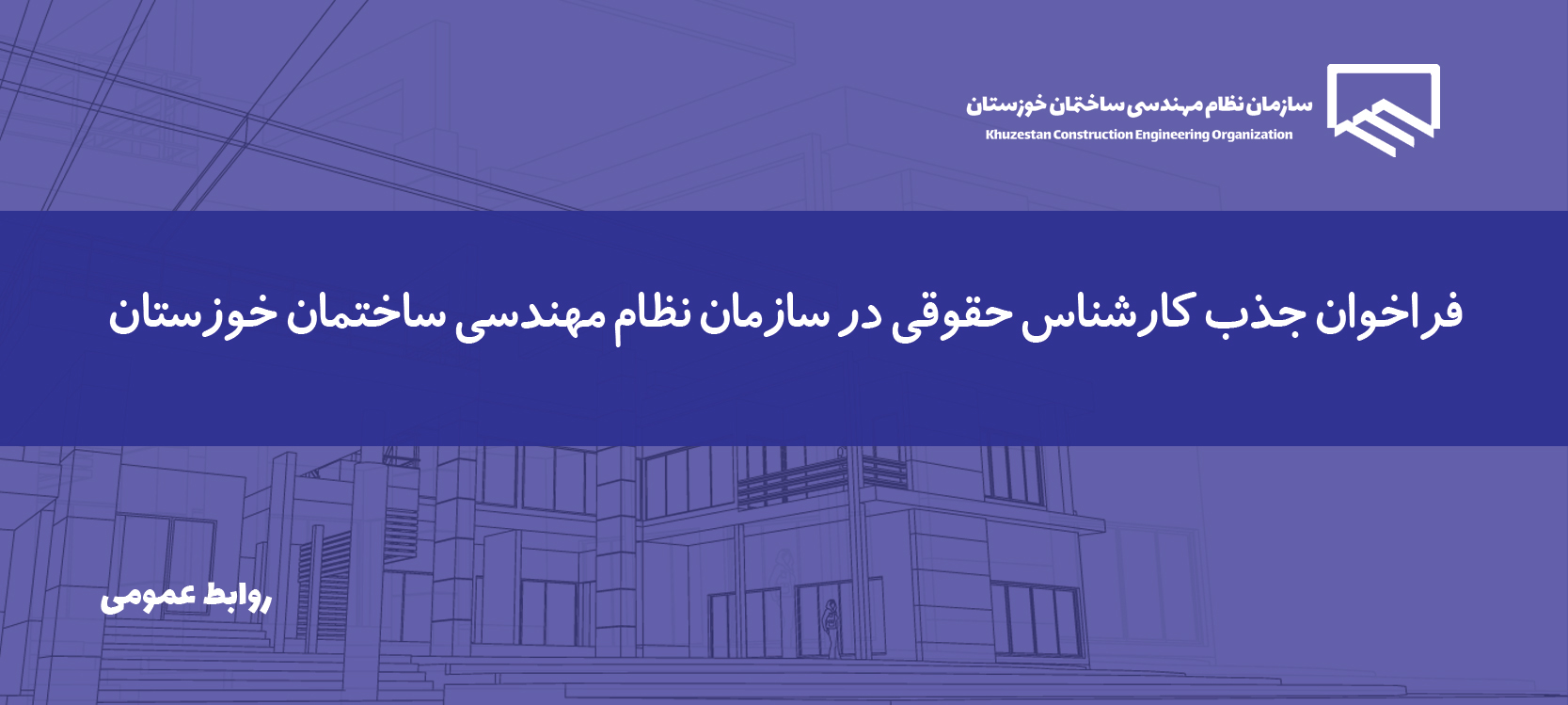 سازمان نظام مهندسی در نظر دارد بهمنظور تکمیل کادر تخصصی خود، یک نفر کارشناس حقوقی را جهت استخدام و فعالیت تماموقت در شورای انتظامی، از طریق فراخوان جذب نماید.