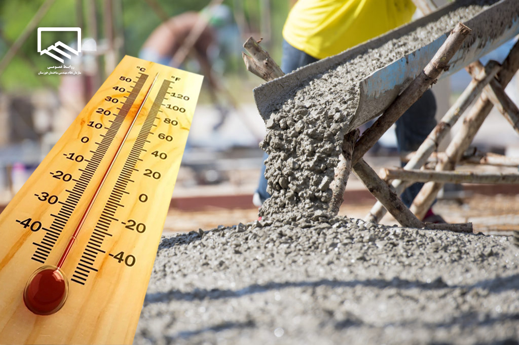 با توجه به شدت گرما در فصول گرم در استان خوزستان و دماي عمدتا بالاتر از 45 درجه سانتیگراد و بعضا در تابستان بیش از 50 درجه، لازم است تا با عنایت به بند 9-22-5-5-1 و 9-22-5-5-2 از مبحث نهم مقررات ملی ساختمان ،براي جلوگیري از تبخیر سریع آب بتن، افزایش کارایی بتن، کاهش دماي بتن و در نهایت افزایش کیفیت و حصول مقاومت فشاري مورد نیاز بتن، از ساخت و اجراي بتن در دماي بالاتر از دماي حد مجاز بتن ( 32 درجه سلسیوس) جلوگیري به عمل آید و پیشنهاد می گردد ممنوعیت ساخت و اجراي بتن در بازه زمانی 11 صبح لغایت 18 بعدازظهر ( ساعت اوج دما) تا پایان شهریور ماه سال جاري ایجاد شود ،تا در شرایط مطلوب ساخت و اجراي بتن فراهم و باعث بهبود و ارتقاء سطح کیفی اجراي کار گردد.