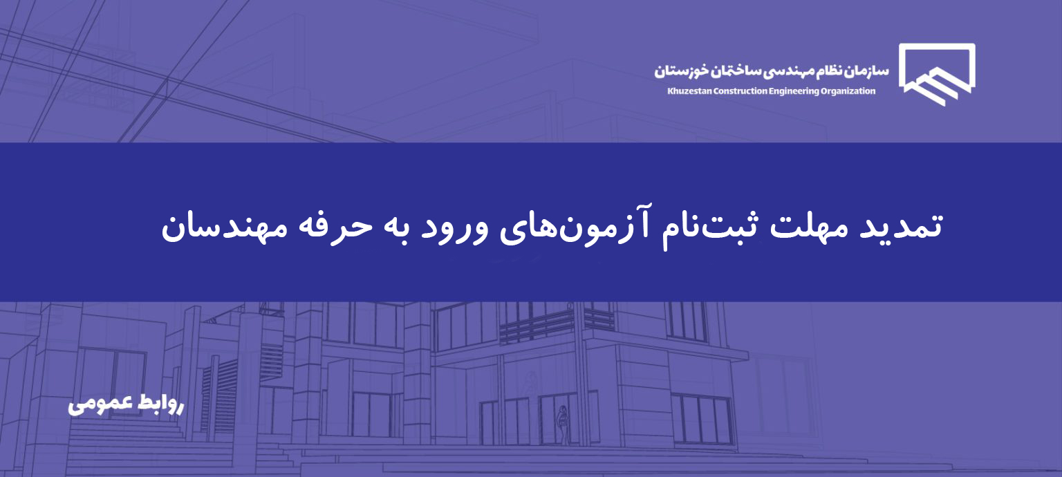 به گزارش روابط عمومی سازمان نظام مهندسی ساختمان خوزستان، محمد جامع، رییس اداره نظام مهندسی ادارهکل راه و شهرسازی خوزستان، در گفتوگو با روابط عمومی سازمان اظهار داشت: با توجه به حجم بالای مراجعات و درخواستهای داوطلبان از سراسر کشور، تصمیم گرفته شد بهمنظور ایجاد فرصت مجدد برای ثبتنام، مهلت نامنویسی آزمونها برای مدت محدودی تمدید شود.