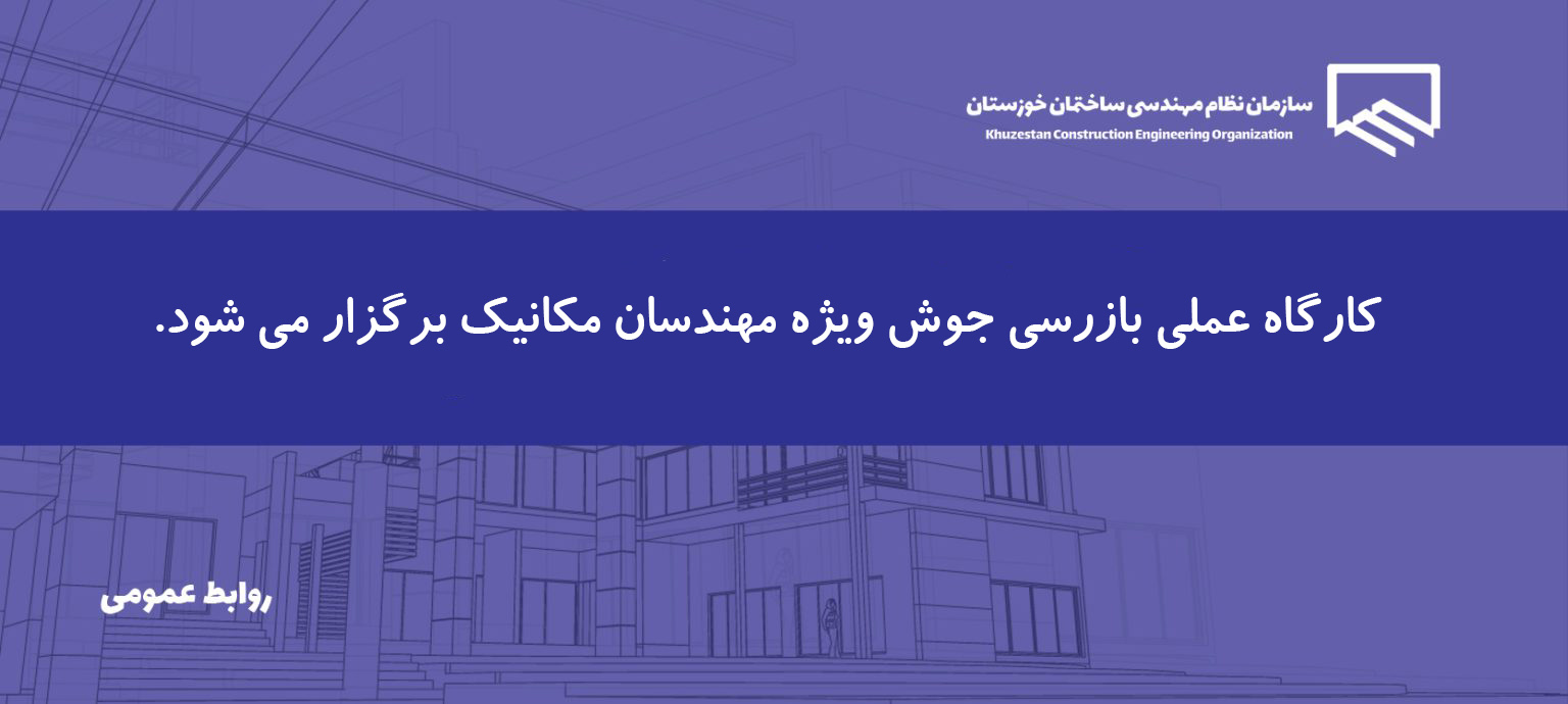 بدینوسـیله به اطلاع کلیه مهندسان در رشته مکانیک در راستاي دریافت صلاحیت بازرسی گاز میرساند،سازمان نظام مهندســی ساختمان اسـتان خوزستان،در نظردارد کارگاه عملی بازرسی جوش را ازتاریخ 1404/11/30 تا 1404/12/01 به مدت16سـاعت بصـورت حضـوري برگزار نمـایـــد.
