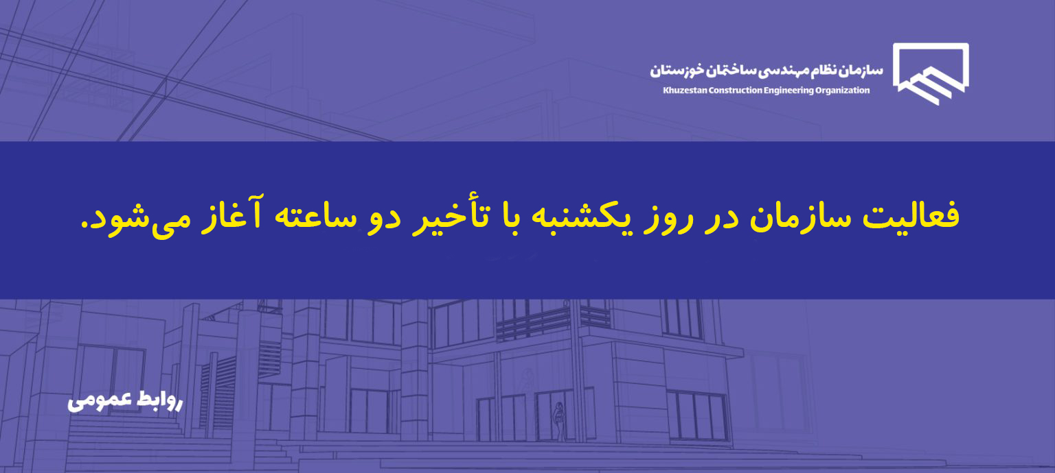 آغاز فعالیت سازمان در روز یکشنبه 13مهر 1404 با تأخیر دو ساعته