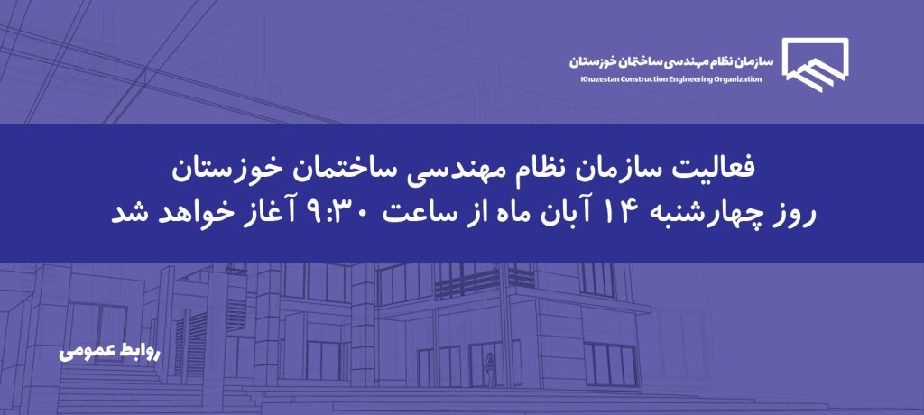 13 آبان تغییر ساعت آغاز بکار سازمان در روز چهارشنبه 14 آبانماه به اطلاع اعضای محترم سازمان و شهروندان گرامی میرساند؛بر اساس تصمیم کارگروه آلودگی هوای استان خوزستان و با توجه به تداوم... ادامه مطلب
