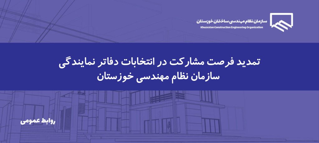 07 بهمن اطلاعیه پنجم – انتخابات مدیران دفاتر نمایندگی استان بدینوسیله به اطلاع کلیه اعضای محترم عضو سازمان نظام مهندسی ساختمان استان خوزستان میرساند که پیرو اطلاعرسانیهای قبلی د... ادامه مطلب