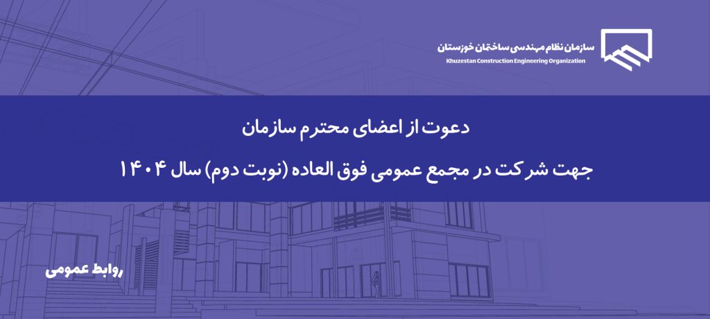 07 بهمن دعوتنامه مجمع عمومی فوق العاده “نوبت دوم” سال 1404 عضو محترم سازمان نظام مهندسی ساختمان خوزستان با سلام و احترام بدینوسیله از شما دعوت میگردد در مجمع عمومی فوق العاده “ن... ادامه مطلب